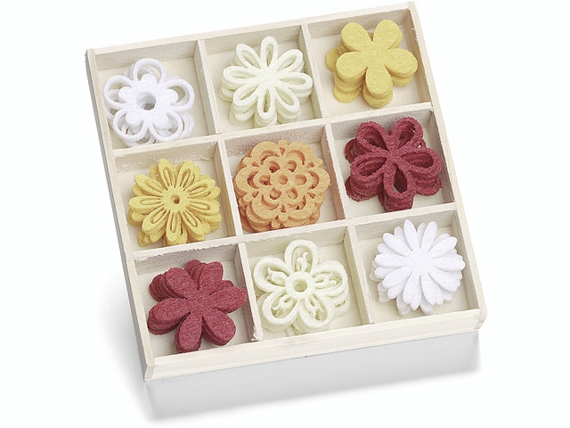 Filcové ozdoby 22 mm v boxu - kytičky (K8001203)