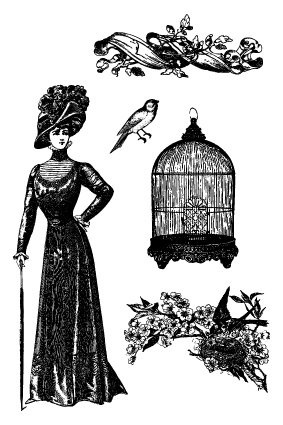 Razítka na pěnovce - Klec, ptáček