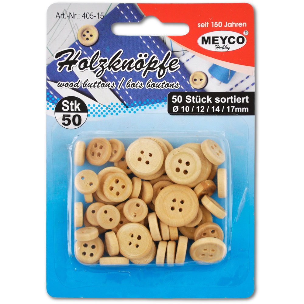 Dřevěné knoflíky, 50 ks, přírodní, různé velikosti (40515)