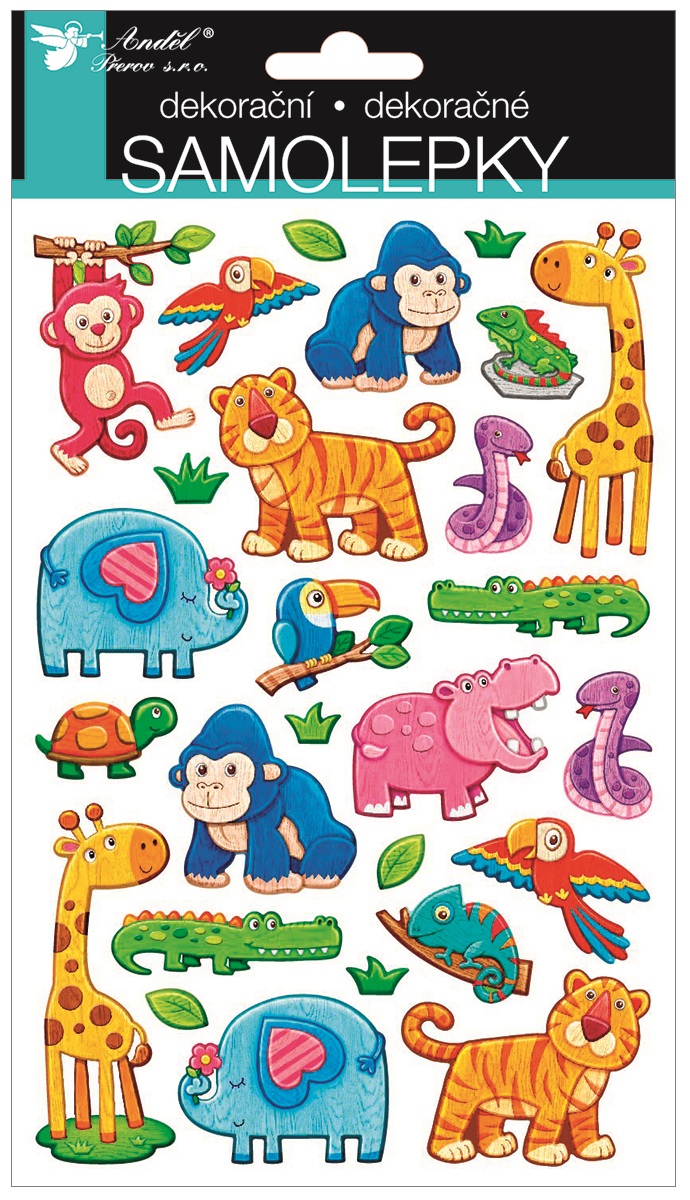 Samolepky exotická zvířata plastické 14 x 25 cm (10430)