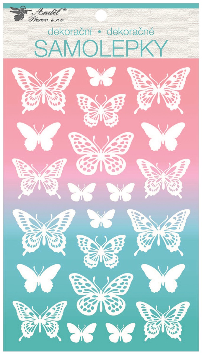 Samolepky bílé s glitry 14 x 24 cm, motýlci (15043)