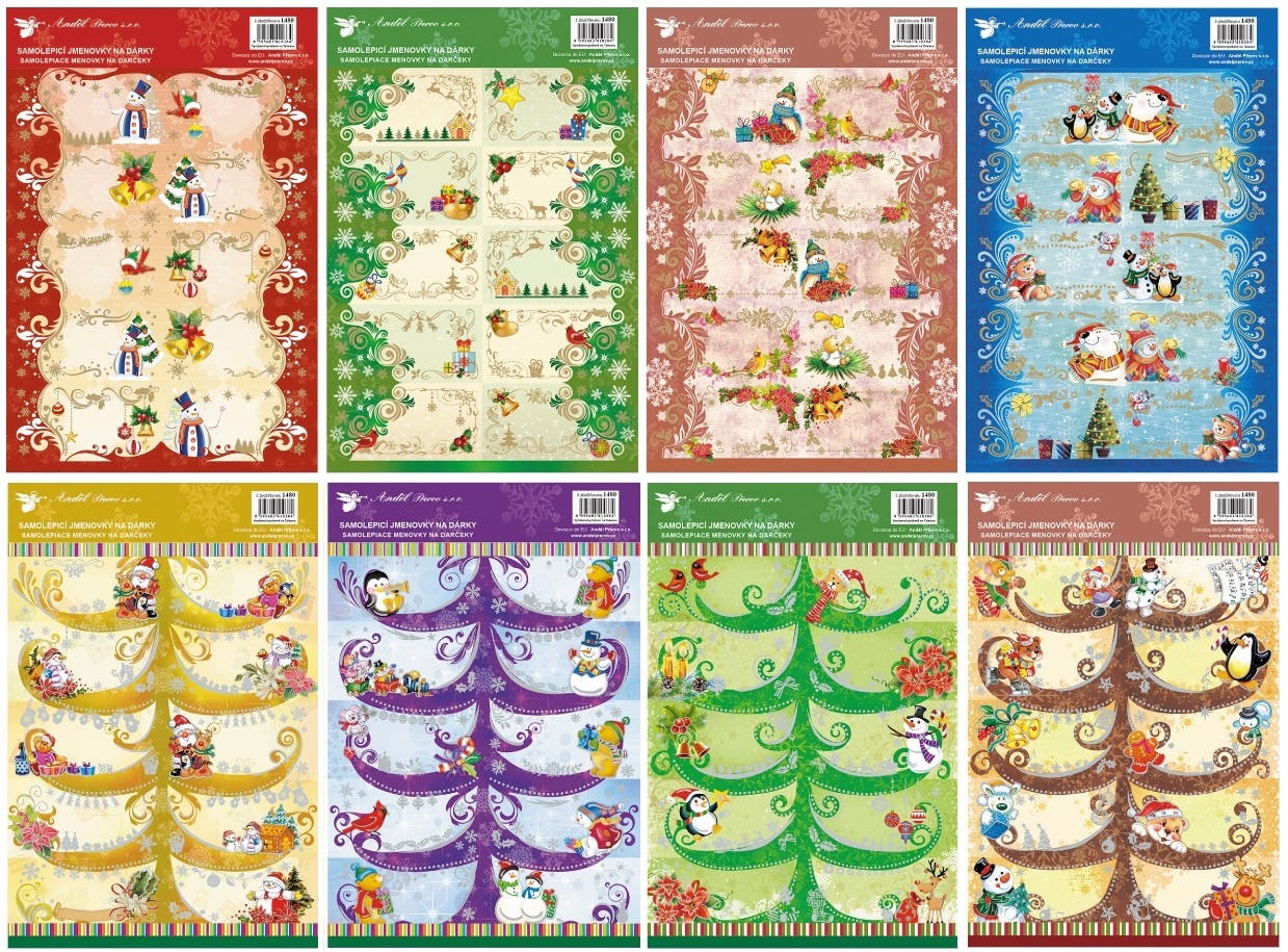 Samolepicí jmenovky na dárky strom s ražbou 10ks, 22x17cm (1480)