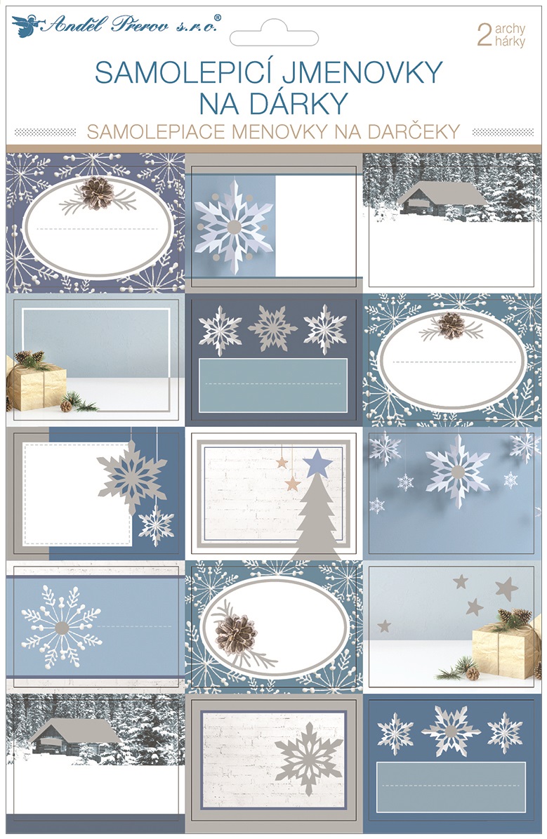 Samolepicí jmenovky na dárky s glitry 20 x 31,5 cm, 2 archy (10650)