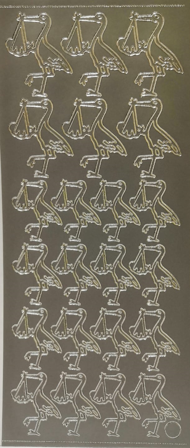 Obrysové samolepky- stříbrné-čáp s mimi. (25531)