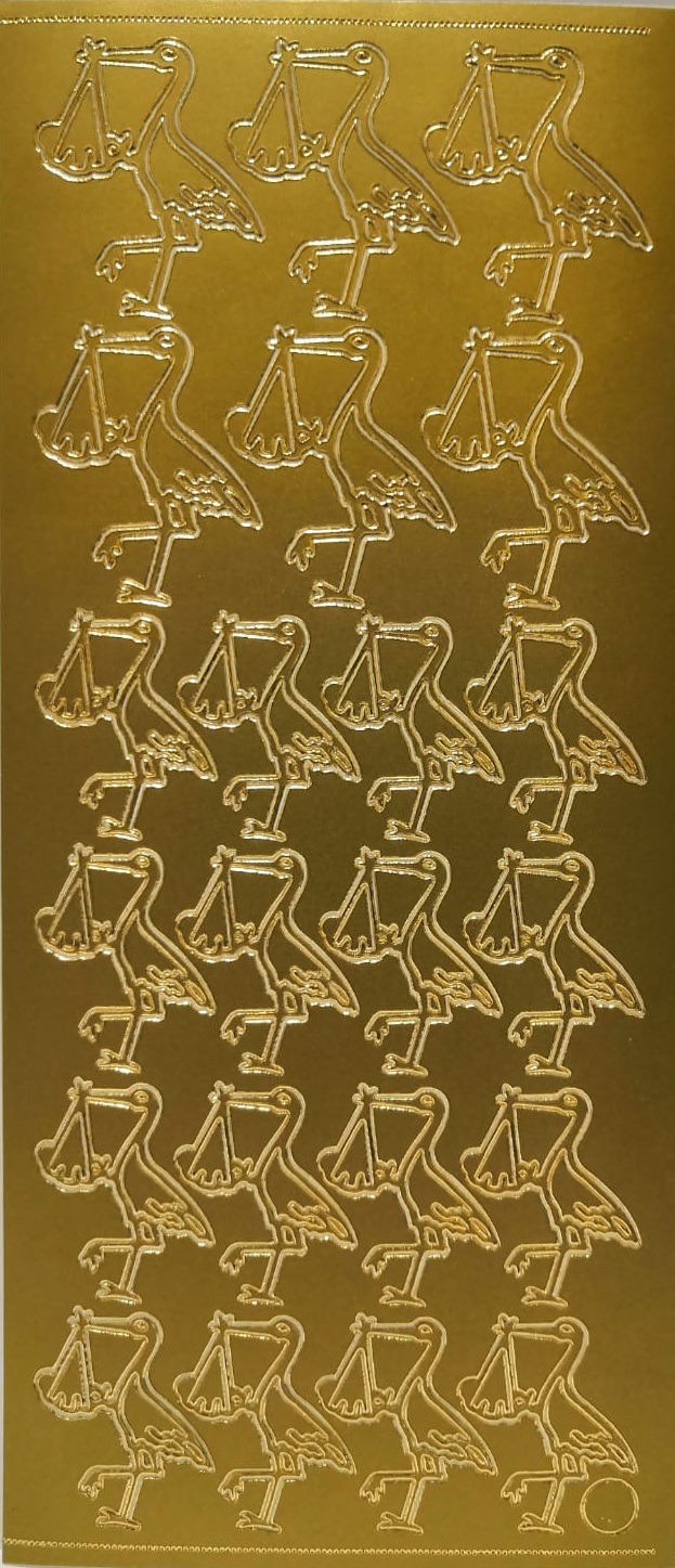 Obrysové samolepky- zlaté-čáp s mimi. (25530)