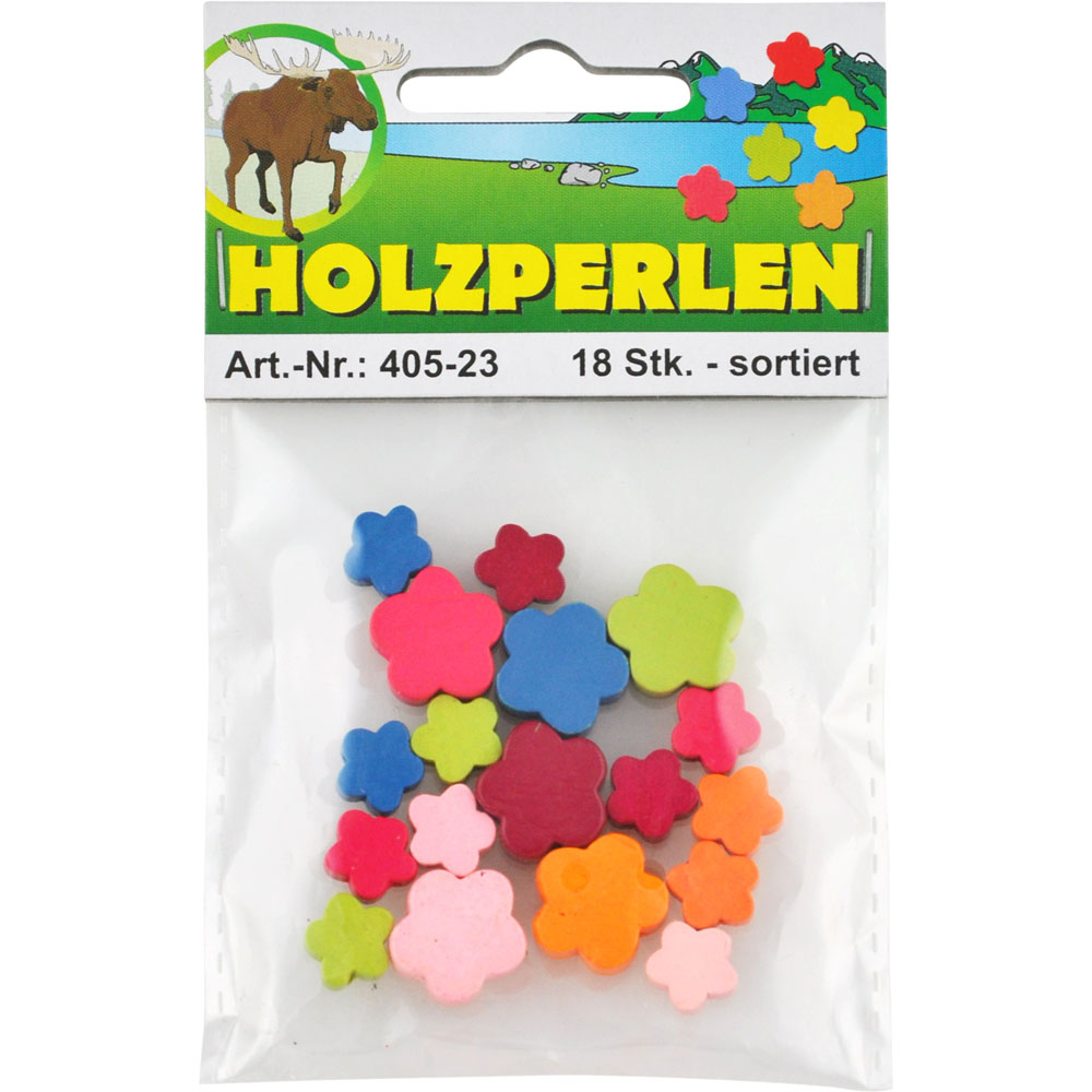 Dřevěné květiny, 12 malých a 6 velkých, 6 barev (40523)