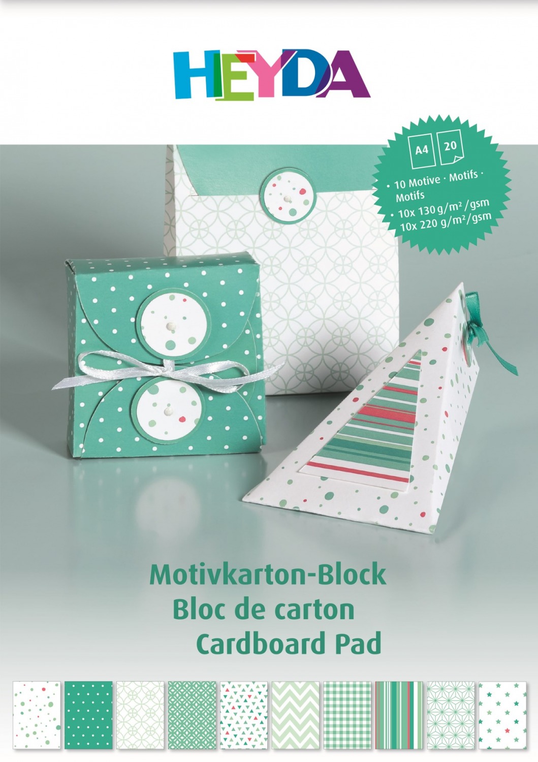 Blok barevných papírů s motivy 20 listů A4 100g/220g tyrkysový mix