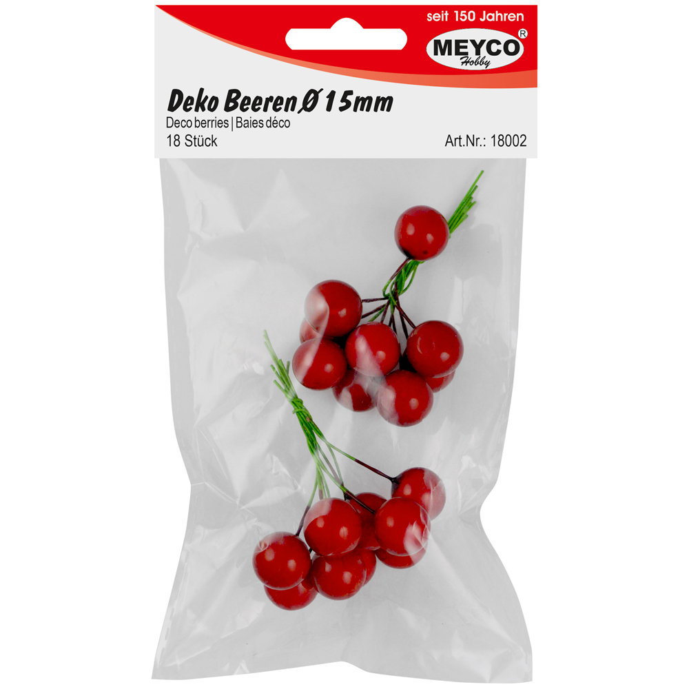 Bobule, červená, ø 1,5cm; s drátem 18 ks (18002)