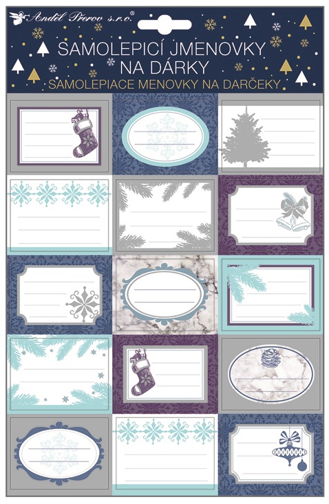 Samolepicí jmenovky na dárky s glitry 30x20 cm, 15 ks (10385)