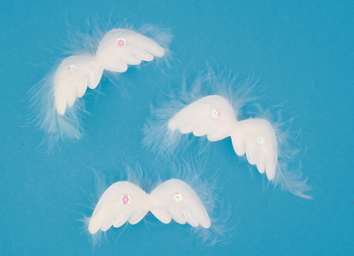 Křídla andělská s peřím na klipu 8 cm, 3 ks