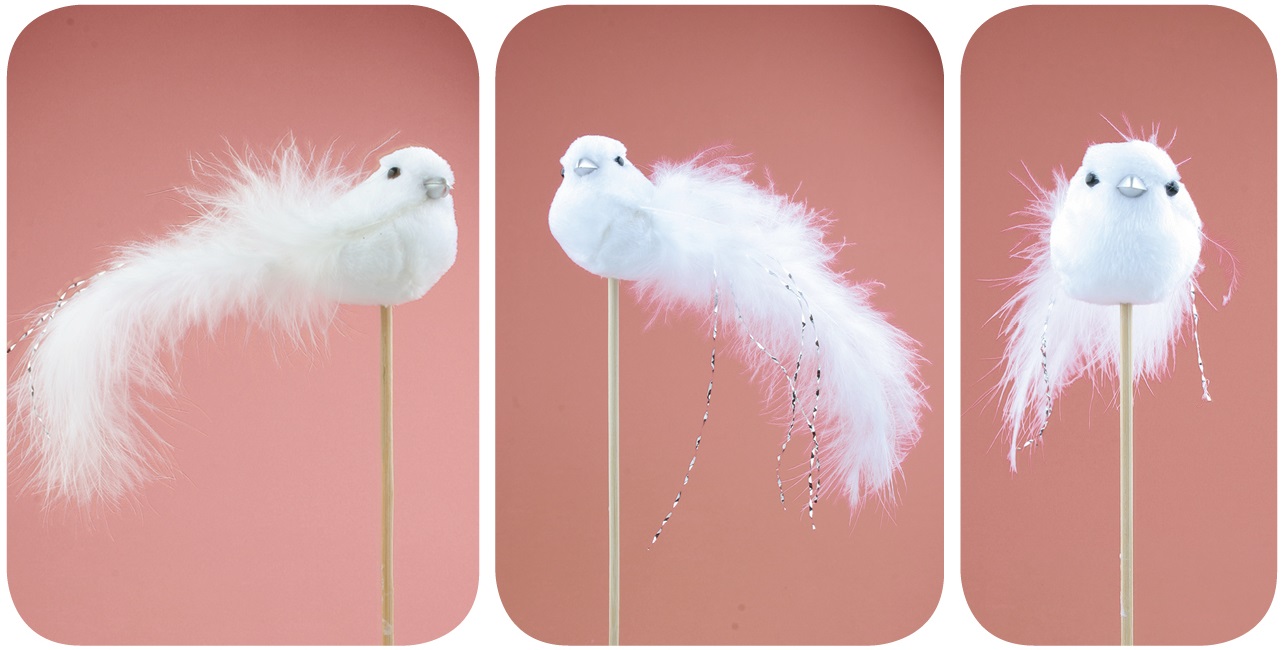 Ptáček plyšový 12 cm + špejle, bílý (18049)