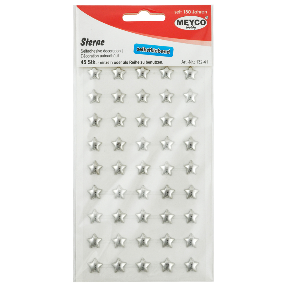 Samolepící hvězdy, stříbrné plastické, 45 kusů (13241)
